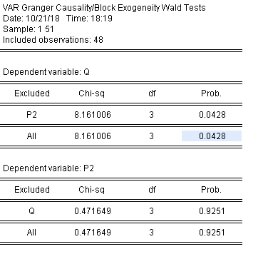 crystal8832 发表于 2018-10-21 19:07 表明在该滞后阶数下P2对Q有预测作用,我觉得没什么。