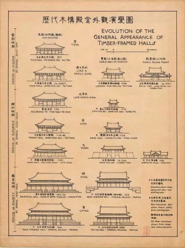 1932年到1946年的十多年间,梁思成和中国营造学社的同仁,自发开始了抢救式的考察古建筑之旅。他们考察了全中国二百多个市、县,上千个古建筑,对其中大多数建筑进行了精细测绘。