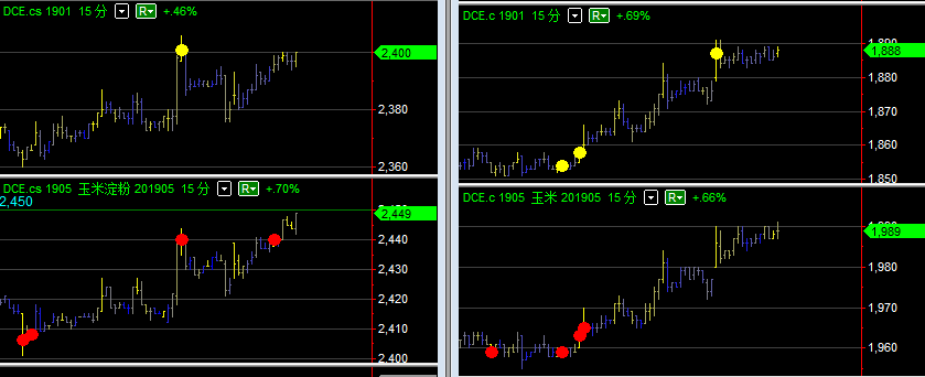早盘玉米冲高全天窄幅震荡,淀粉高开低走下午补涨,玉米多空都进行了换手新多和新空进场,从持仓上也比较好理解了今天为什么玉米和淀粉盘中走势如此不同步。淀粉到了前期高位且新进多头在持续进入,后面惯性冲高破顶是大概率走势。周三周四则是玉米拍卖窗口,由于最后一次拍卖,多头可能借此预期冲高试探套保和投机空头底线在哪。冲高后的走势才是关键,持仓量和成交量都是重要观察点,决定了后市的高度 短线关键位参考(15分钟)