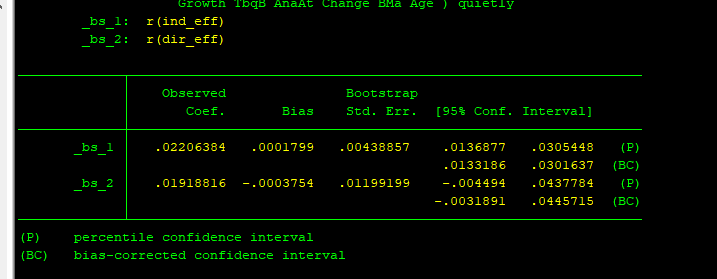 首先,那个不是p值,只是置信区间,BS是偏差矫正的置信区间,bs1代表间接效应,bs2代表直接效应,不包含零 ...