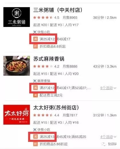 在各个外卖平台上,满减优惠都是平台排名规则的一个重要计算因子,往往商家折扣力度越大,排名靠前的可能性越大。
