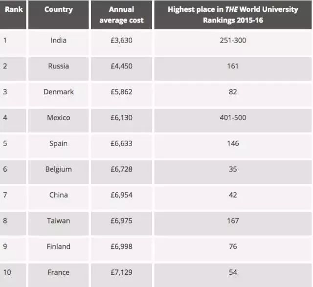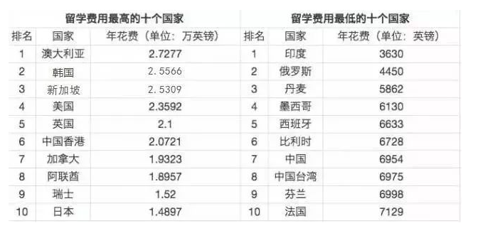美帝居然不是最贵的,没错,最贵的是澳洲,美国排在了最贵留学国家第4位,英国紧跟其后排第5。