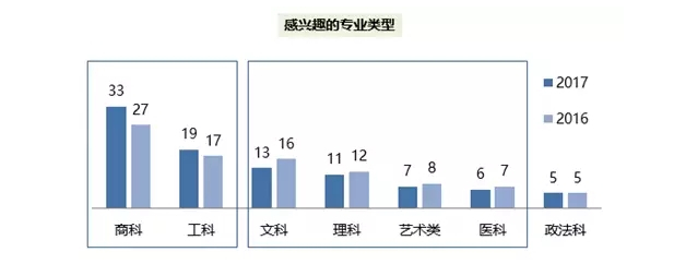 商科作为中国学生的首选留学专业,其热度较去年再次有了明显上涨,达到33%,也能看出专业扎堆的现象比较严重。除商科外,今年倾向选择工科专业的学生比例也有提升,而文科、理科、艺术类以及医科的所占比例则有不同程度下降。