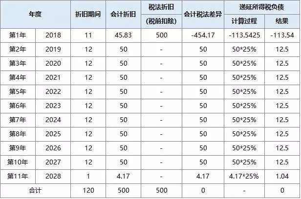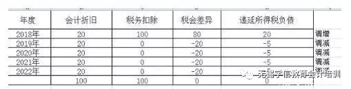 以后在2019-2022各年度中的,我们每年都会涉及税会差异的调整,递延所得税负债也会随着折旧的完成而最终结平。相关的递延所得税处理:20*25%=5