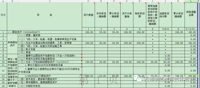 2018年底进行汇算清缴时,需要填写所得税年报附表中的资产折旧、摊销及纳税调整明细表: