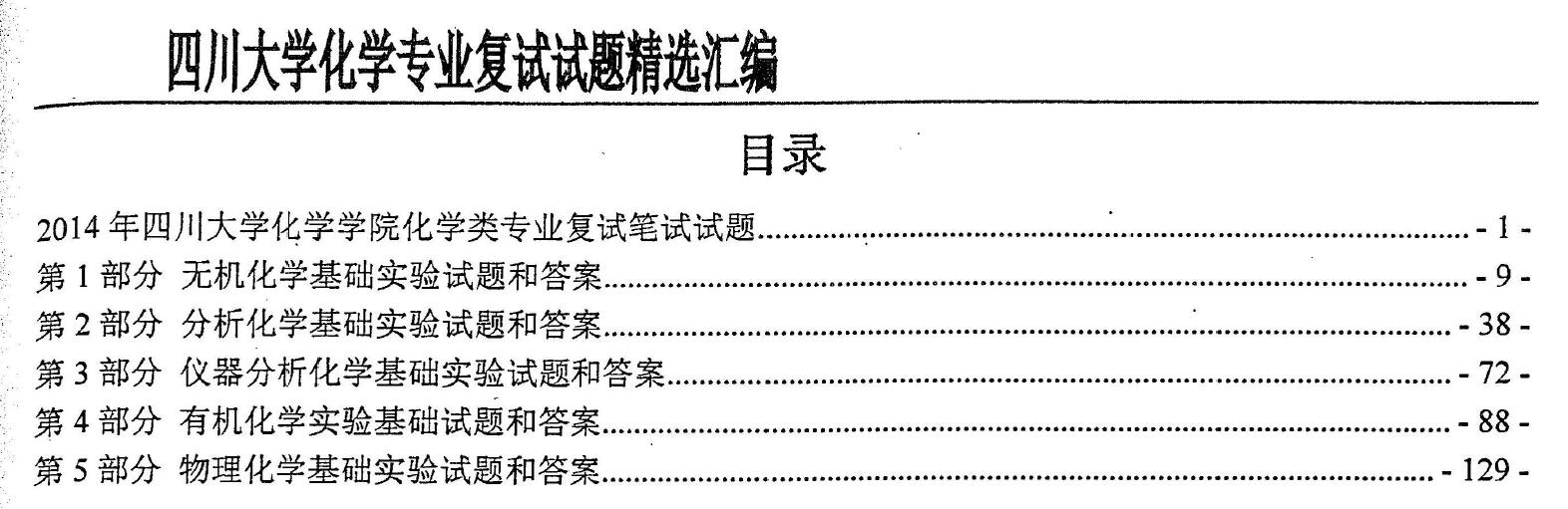 2016年四川大学化学专业考研复试精选试题汇编(含2014化学类专业复试笔试试题)