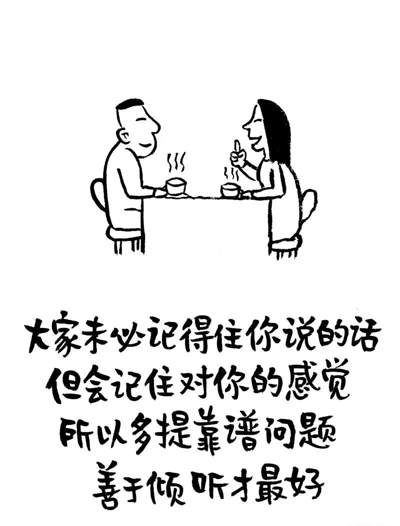大家未必记得住你说的话,但会记住对你的感觉,所以多提靠谱问题,善于倾听才最好