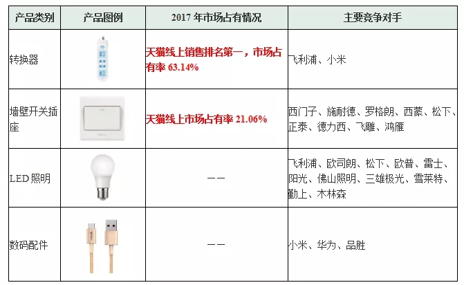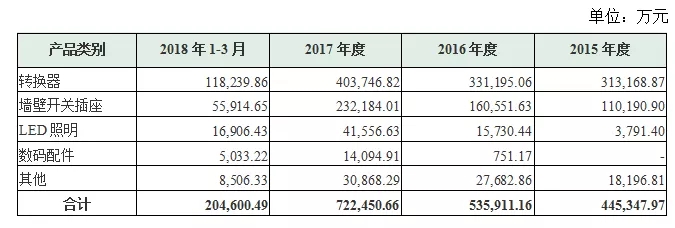 公司专注于以转换器、墙壁开关插座为核心的民用电工产品研发、生产和销售,主要包括转换器、墙壁开关插座、LED照明、数码配件等电源连接和用电延伸性产品,广泛应用于家庭、办公等用电场合。