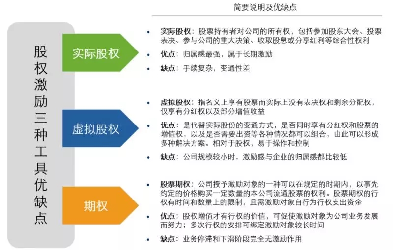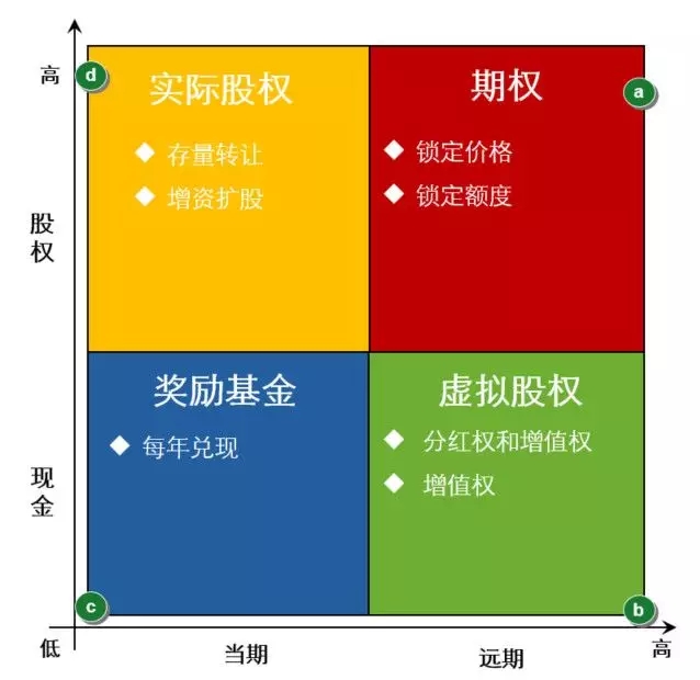 股权激励模式与工具的选择,每个企业行业不同,发展阶段不同,员工的素质和诉求不同,其股权激励模式和工具应有所区别,或者多种工具配合使用。