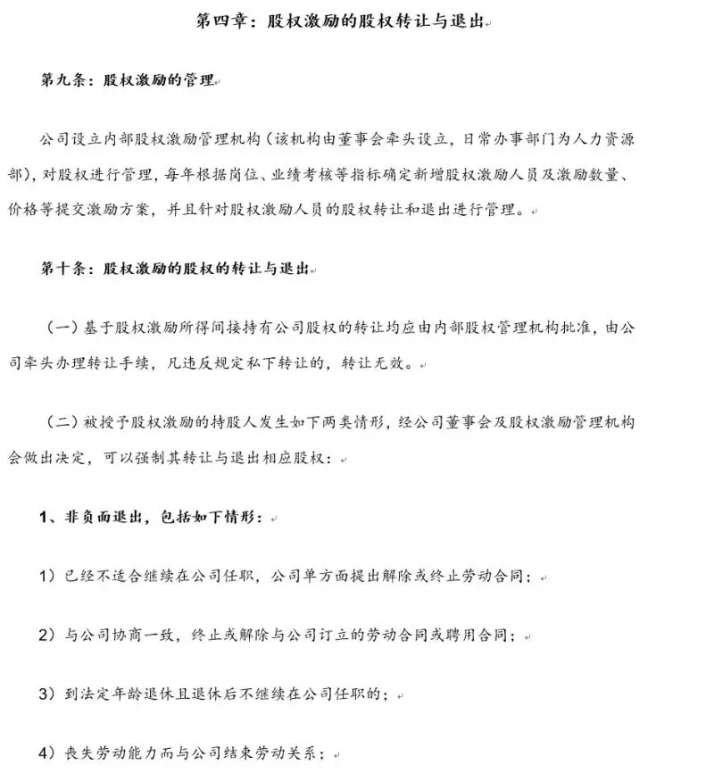 设立内部股权管理机构,制定股权管理办法,发生股权变动时按股权管理办法进行操作,可实现持股人员的股权转让和退出,框架性原则如下,详细内容由股权管理办法约定。