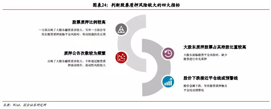 质押比例较高一方面反映了大股东融资需求较大,另外一方面过高的质押比例会导致在股票质押面临平仓风险时,形成负反馈(平仓→股价下跌→更多股票质押达到平仓线→进一步平仓)。