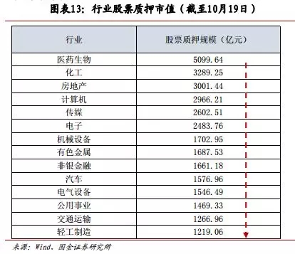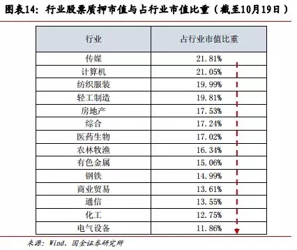 “传媒、计算机、纺织服装、轻工、地产、医药”等行业股票质押较为集中