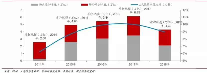 直接:场外质押业务规模占总体规模的一半左右,其中场外质押的资金来源主要是银行。
