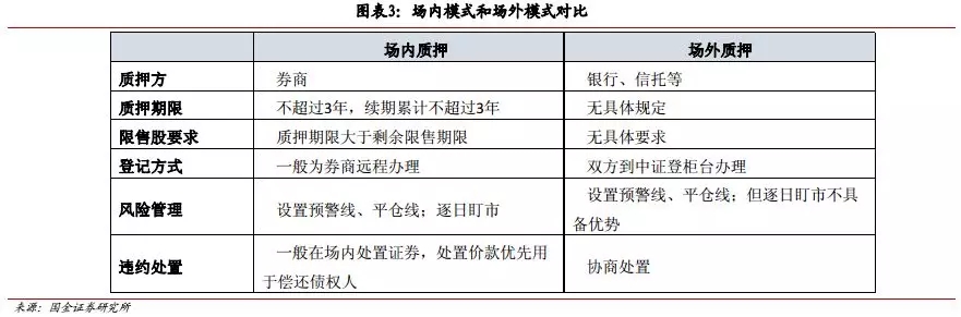 场内质押是以券商为主体,而场外质押是以银行、信托等为主体。