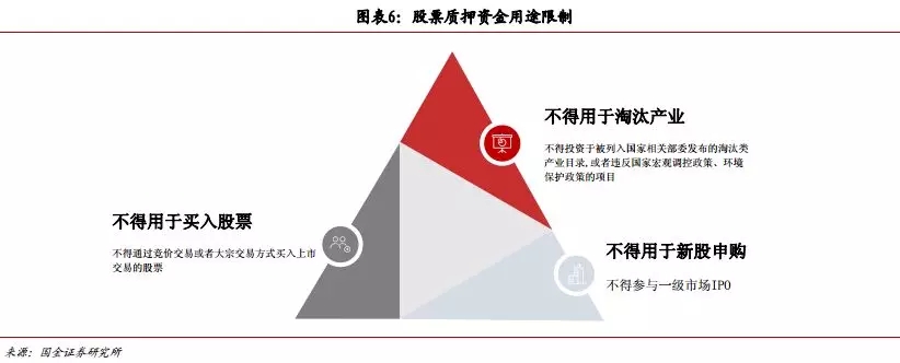 2018年质押新规明确规定融入资金需要进行专户管理,不得用于“淘汰类产业、新股申购、买入股票”等。