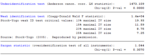 20123029 发表于 2019-2-14 21:18 老师,想请问下我的工具变量2SLS的第一阶段回归出来的F值是10671.85,是不是太大了不太对啊,其他的结果都 ...