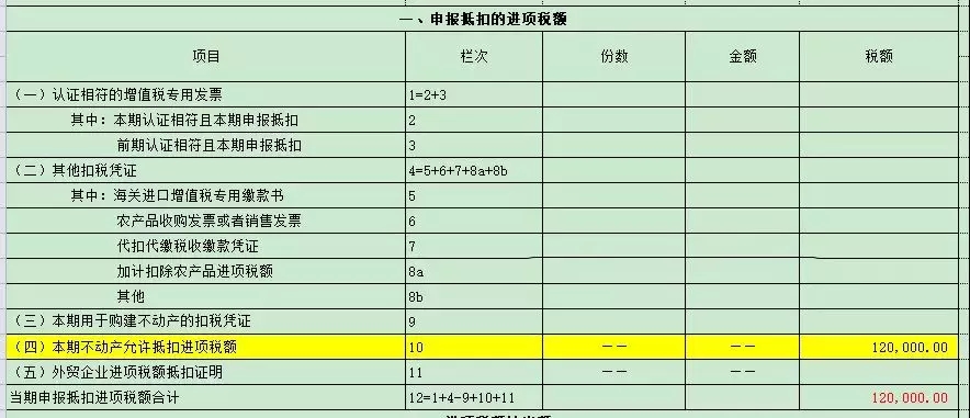 后期再转入抵扣时候填表如下: