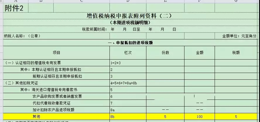 附表二的第4栏,其他扣除凭证