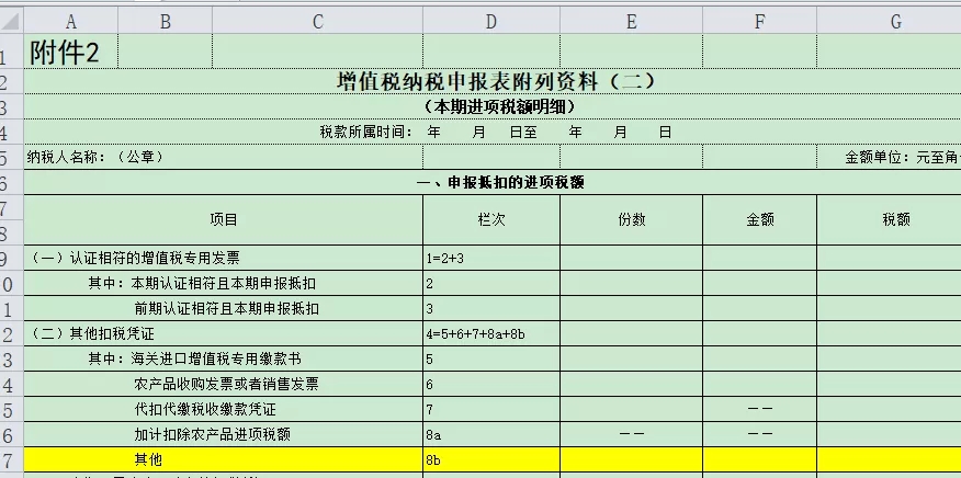 其他扣税凭证”:反映本期申报抵扣的除增值税专用发票之外的其他扣税凭证的情况。