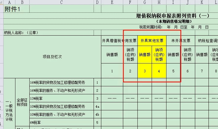 附表一的第3、4栏次,开具的其他发票