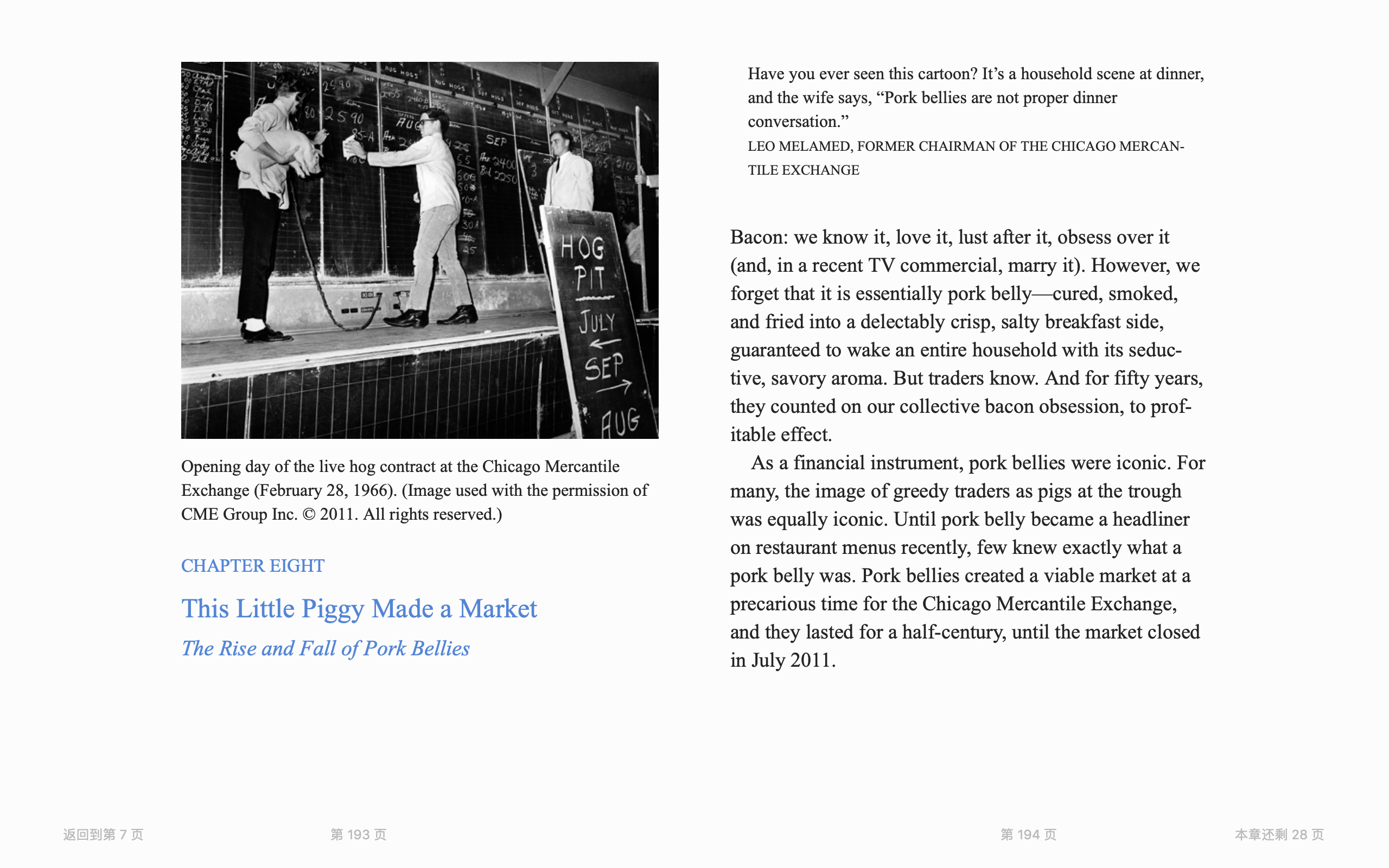 内容涵盖:普通食品如何一步步发展成期货品种,比如 谷物 + 鸡蛋 + 白糖 + 咖啡 + 可可 + 大豆 + 生猪&牛犊子...每个都是一部成名史...