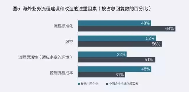 不出意料,在流程设计中,领军者比其他中国企业更注重建立标准化流程、保留灵活性和风险控制(见图5)。
