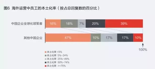 领军者的海外员工本土化率高于其他中国企业,是本次研究的一项重大发现。