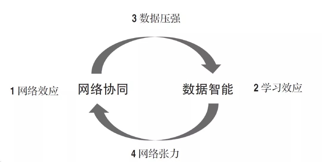 二者机制不同却又相辅相成,网络协同推动数据智能发展,同时,数据智能也成为了网络协同扩张不可缺少的助力,构成了智能商业的双螺旋。