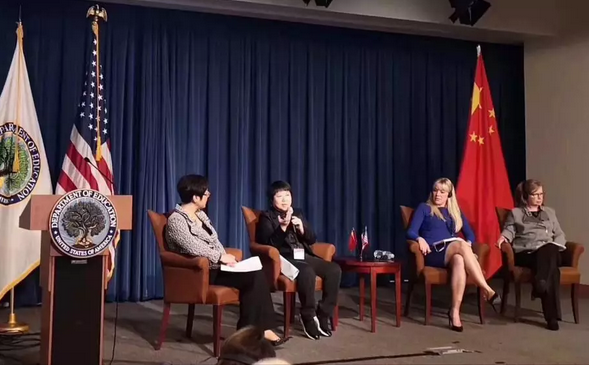 会上,黄劲博士同摩根大通集团全球慈善事业副总裁、美国教育部部长高级顾问、中国驻美大使馆公使兼教育参赞杨欣育女士,共同与参会嘉宾探讨中美两国职业教育发展方向及如何解决在发展过程中遇到的问题。