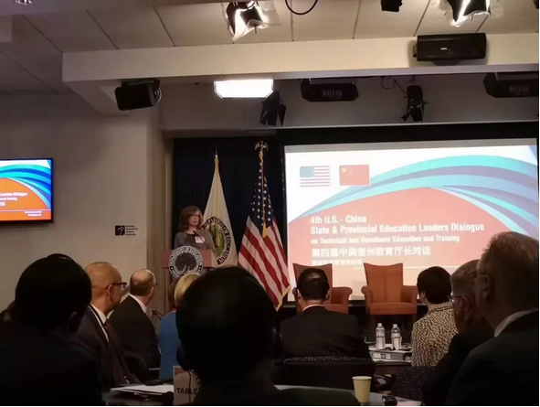 2018年10月30—31日,“第四届中美省州教育厅长对话”在美国召开。来自中国和美国的高级教育管理者共聚一堂,就职业技术教育与培训、产教融合、国际化应用型人才培养等议题进行深入交流,安博教育集团总裁黄劲博士出席会议并代表中国教育企业讲话。