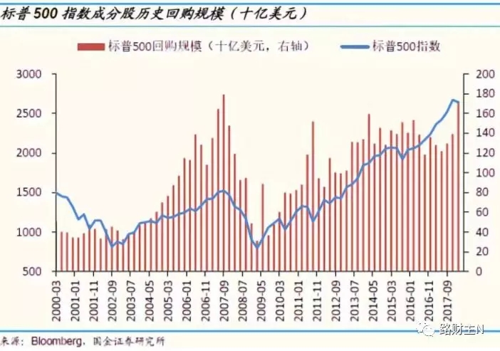 进入2017年以来,美股上市公司的股票回购更是达到了疯狂的地步,根据各大公司公布的股票回购计划,标普500指数成份股2018年的回购规模可能达到1万亿美元。