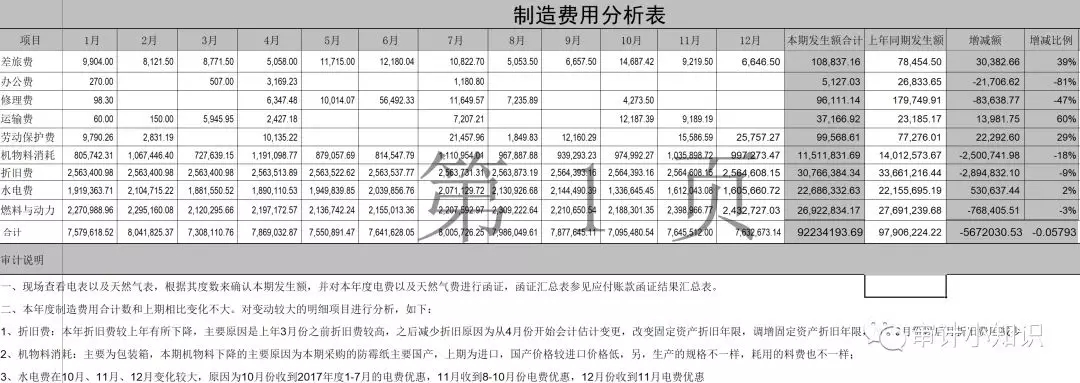 (1)比较当年度和以前年度制造费用的增减变动,询问并分析异常波动的原因。