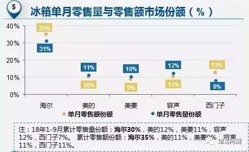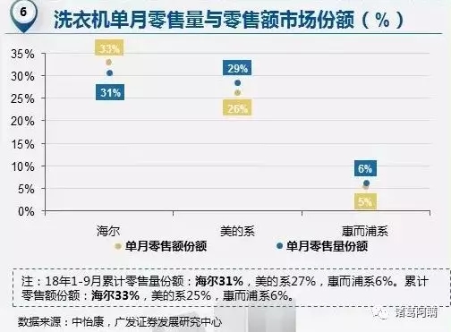 产业在线数据显示,2018年第三季度空调、冰箱、洗衣机内销量同比分别下滑12.6%、6.8%和1.6%,其中美的空调、冰箱出货量双双下滑10%,洗衣机销量增长5.3%。从中怡康前三季度零售统计来看,美的系市场份额与上半年基本持平。