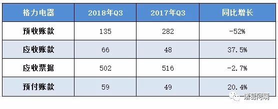 三季报显示,格力电器前三季度预收账款135亿元,比2017年的历史高位282亿回落52%,需求放缓下经销商打款意愿降低,公司打款要求也有所放松,但与2016年相比仍有16%增长。应收账款66亿同比增长37.5%,应收票据501亿元同比微降2.7%,公司继续用票据采购加大对经销商的资金支持力度。