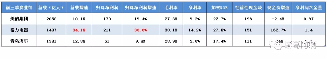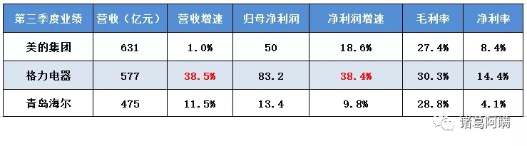 10月30日晚,三大白电企业相继公布三季报。格力电器毫无悬念地以30%+营收和业绩增速傲视全行业,就连市场惨淡的第三季度增速也在35%以上,大幅超预期。这大概是格力电器少有地发布业绩预告的原因。