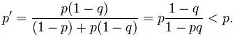 如果一个格子被搜索后,没有发现潜艇的踪迹,按照贝叶斯原理更新后,这个格子潜艇存在的概率就会降低: