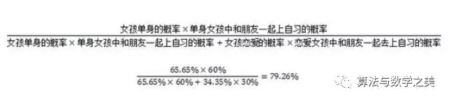如果研究结果还发现,在单身女孩中,手机使用率高于1.2次/小时占其中的20%;在已经恋爱的女孩中,这一数值则是60%。对于目标女孩的观察结果是,她的手机使用率高于每小时1.2次,那么概率结果又要更新了——
