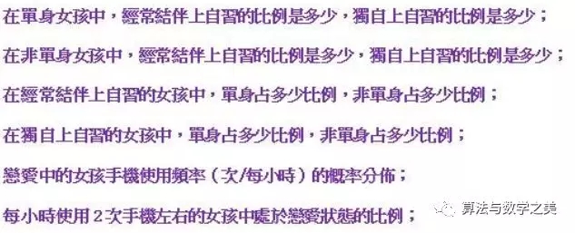 比如发现目标mm喜欢和朋友一起去上自习,而根据自己的“统计研究结果”:在已经恋爱的mm中,喜欢和朋友一起去上自习的女孩大约占其中的60%;在没有恋爱的女孩中,喜欢和朋友一起去上自习的女孩大约占其中的30%;