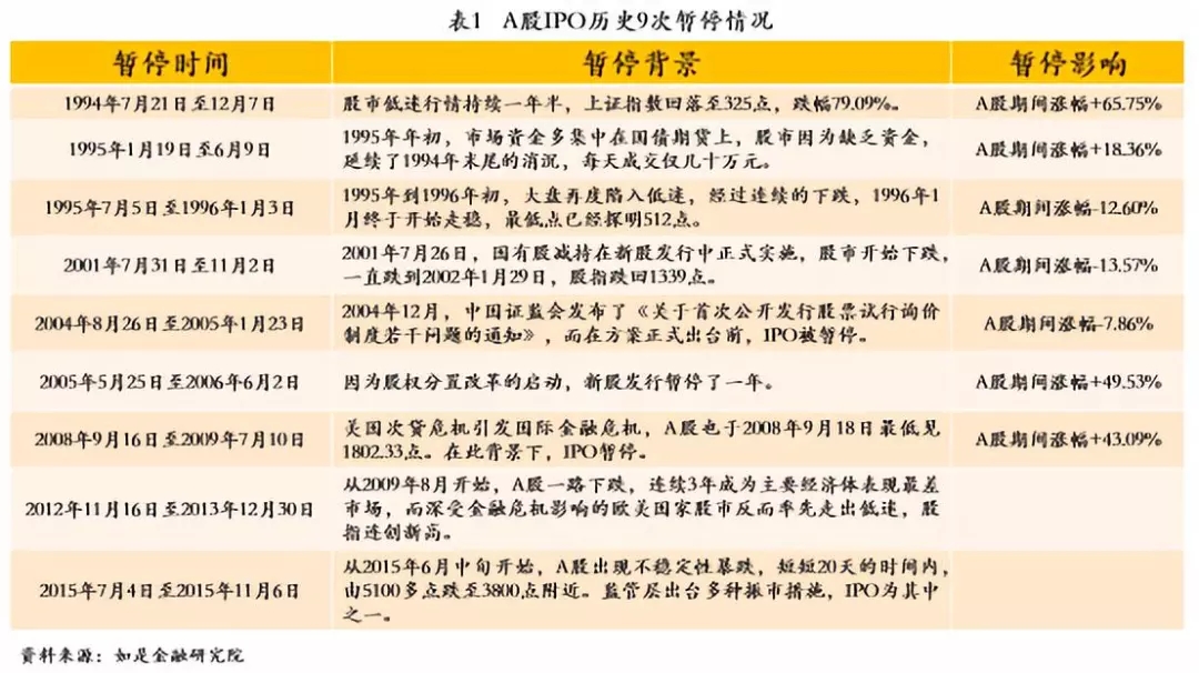我国A股在现有的IPO制度下,有一个问题始终困扰着市场,就是IPO节奏行政化,经常暂停,这导致过多的企业排队形成“IPO堰塞湖”。A股历史上IPO一共暂停过9次。一般来说,监管层选择暂停IPO主要是出于维护市场秩序的目的,因此往年暂停发行的时间节点都是在市场出现重大波动(如股灾、金融危机)后或者是发行制度出现重大改革前。不管是出于什么考虑,但IPO暂停的确会实实在在的影响到拟上市企业的融资,有时甚至会彻底改变一个企业的命运,所以对企业来说,预判IPO的趋势显得非常重要。