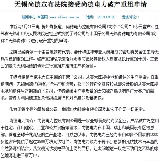 富豪榜上再也不见他的身影。而更多的传闻则是,虽然尚德破产了,但施正荣却用眼花缭乱的财技转移了资产,公司虽破,个人却囊中不羞。有媒体直接点名道姓认为,施正荣的商业信誉已经彻底破产,几乎没有可能东山再起了。