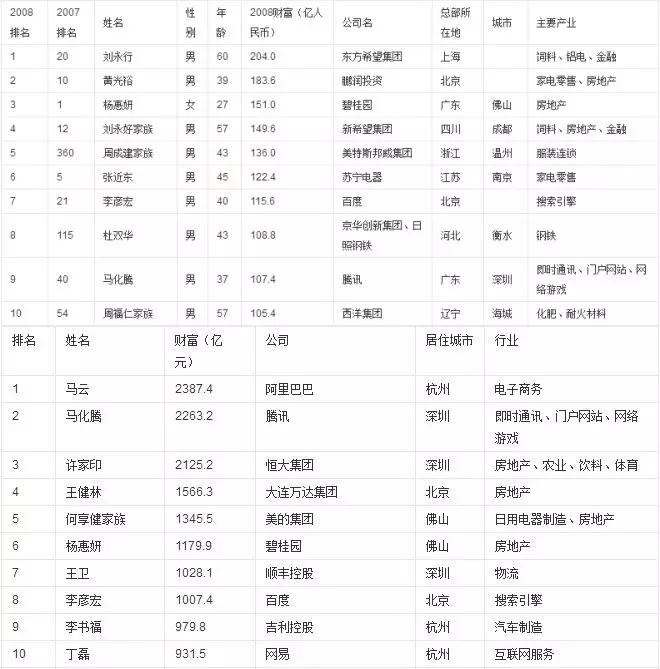 如果我们看看十年前的福布斯中国富豪榜,对今天那些上榜的富豪们的财富体量,会有更多耐人咀嚼之处。