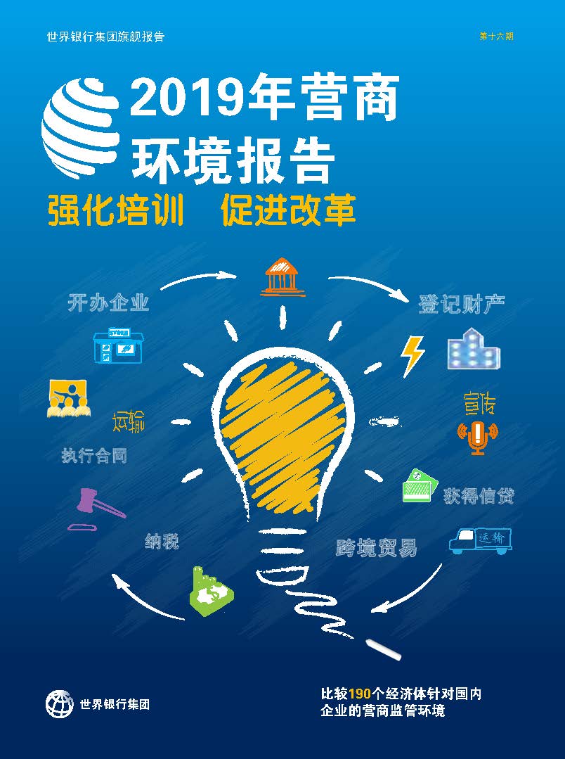 世界银行旗舰报告《2019年营商环境报告:强化培训,促进改革》是该年度报告的第16期,旨在衡量监管法规是否有助于推动或是限制商业活动。《营商环境报告》应用量化的指数分析比较不同时期从阿富汗到津巴布韦190个经济体的商业法规和产权保护。