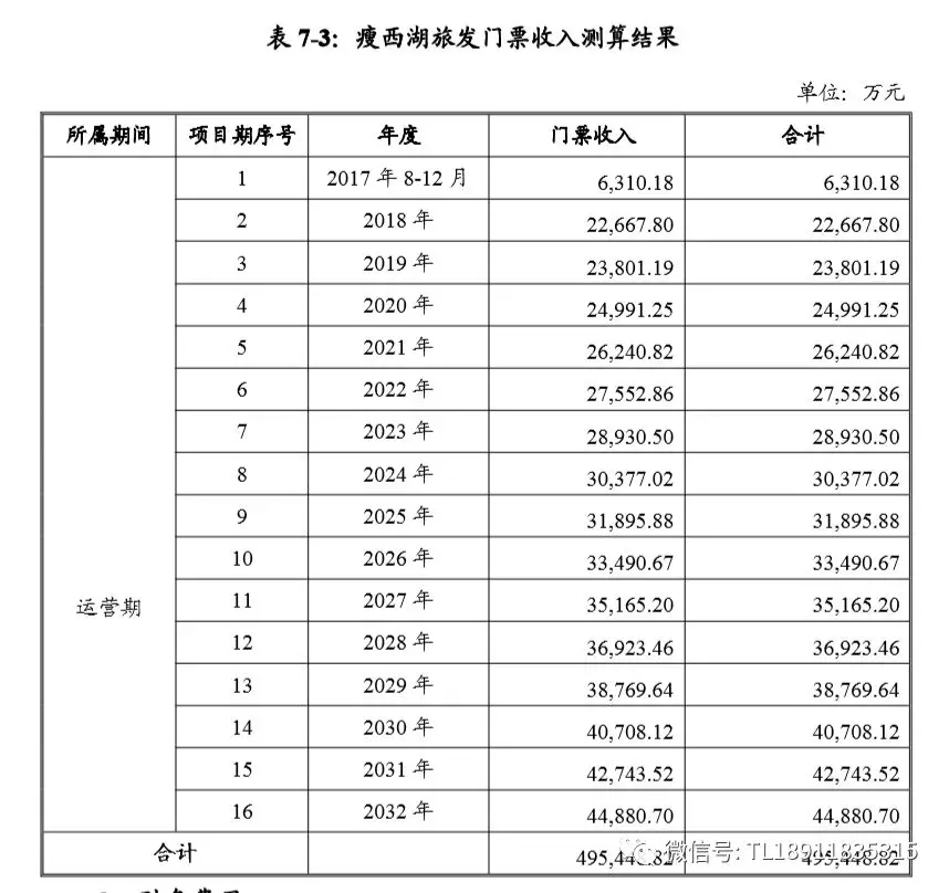经上述测算,2017 年 8 月至 2032 年 12 月末项目营业收入总额为 495,448.82万元,测算结果如下表: