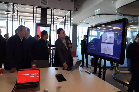 北京华侨科技创业者协会会长、侨创空间董事长、安博教育集团总裁黄劲博士从理念规划、愿景设想、实际运作等方面,向来访领导详细介绍了侨创空间的5大支点,以及智能化系统在侨创空间的应用。
