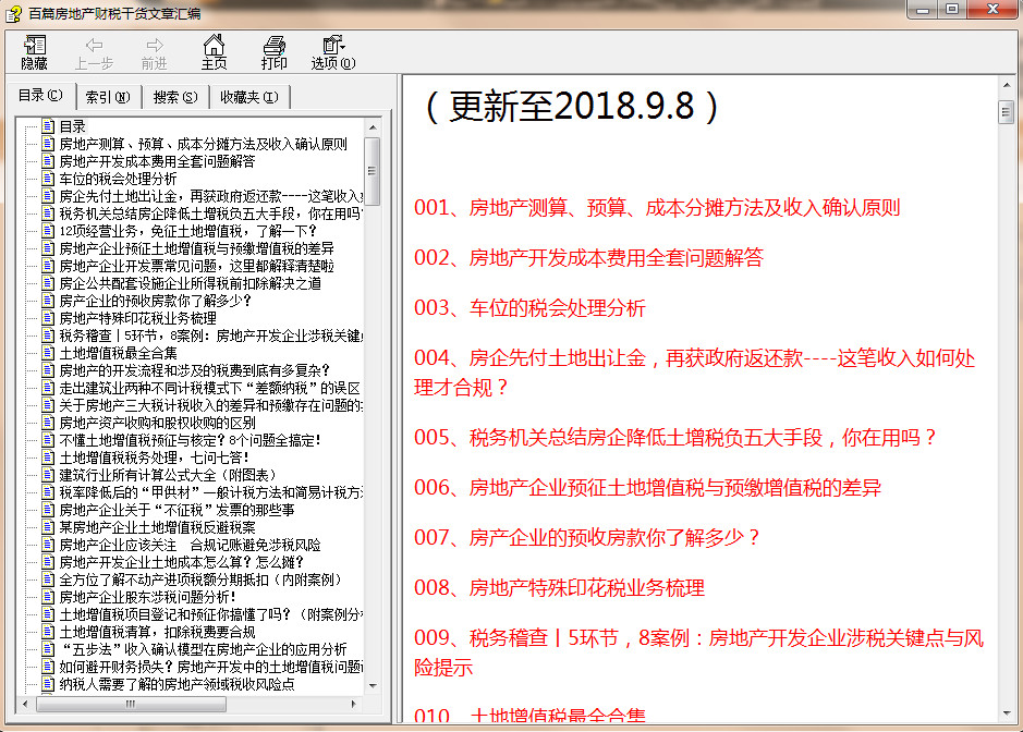 senlly 发表于 2018-11-6 11:17 百篇房地产财税干货文章汇编 利用业余时间,从各专业门户网站上收集了200多份房地产财税文章,时间是201 ...