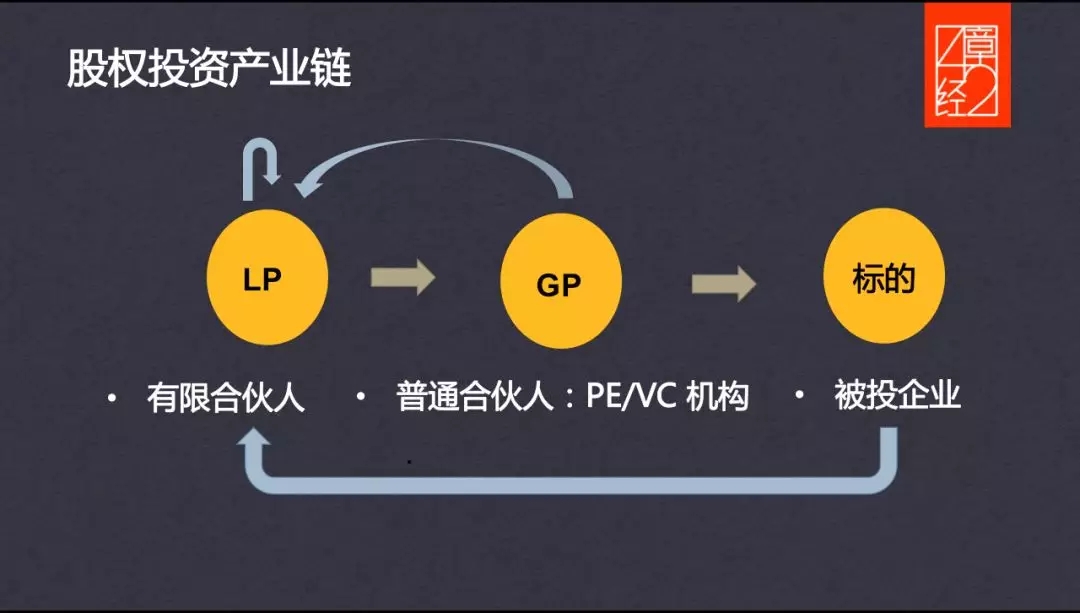 首先回顾一下中国股权投资的产业链。大家都非常熟悉,资金最开始从 LP 端投到 GP,再由这些 GP 去配置到标的企业。这个系统其实不是一个单向流动的产业链,应该是可以在一定程度上实现自循环的系统,这样才是一个健康的生态系统需要具备的性质。