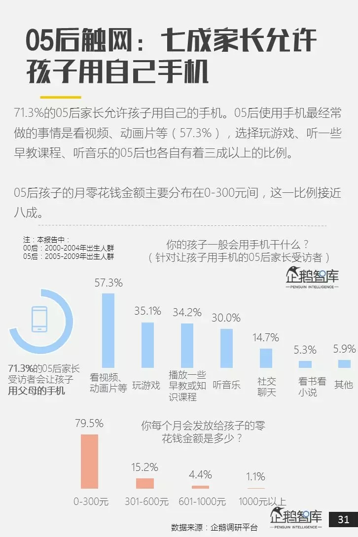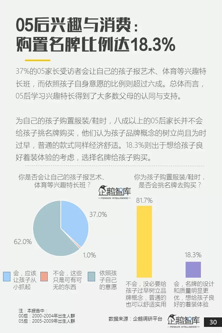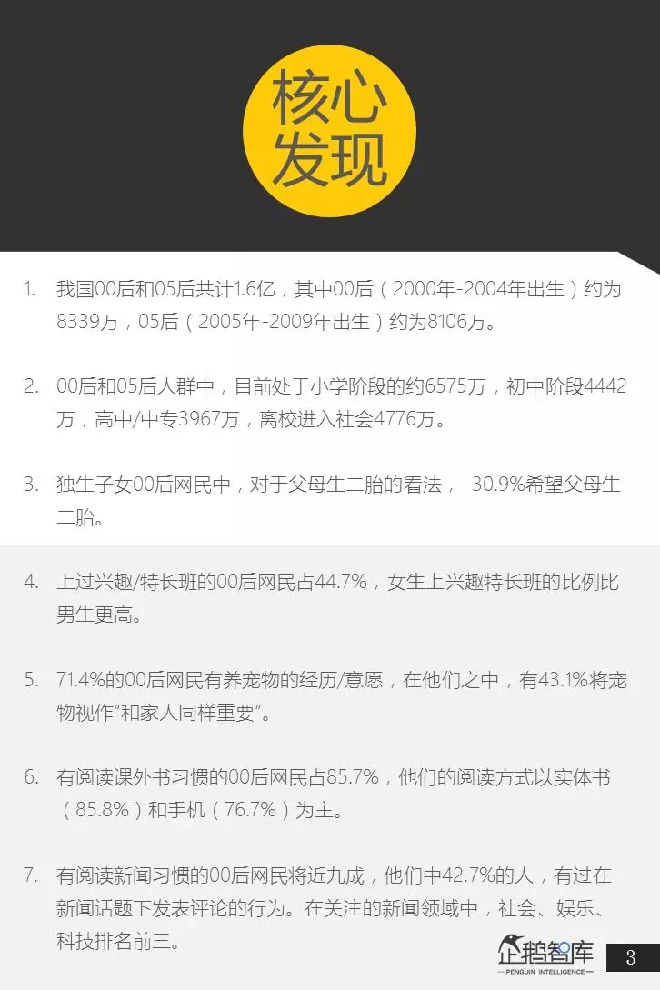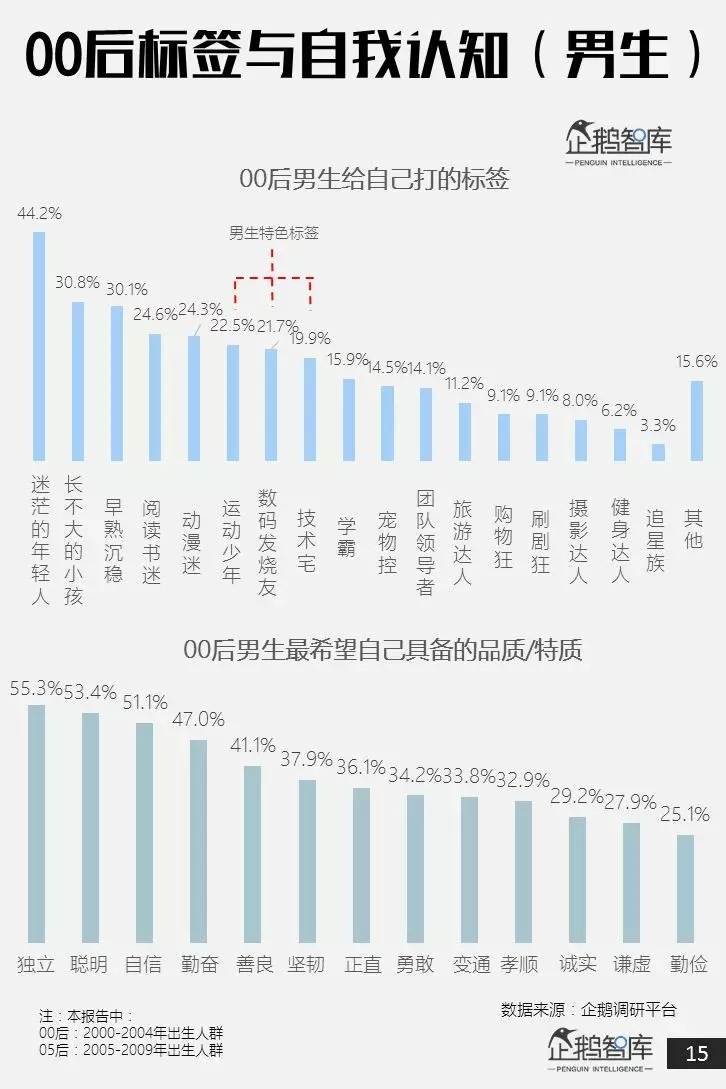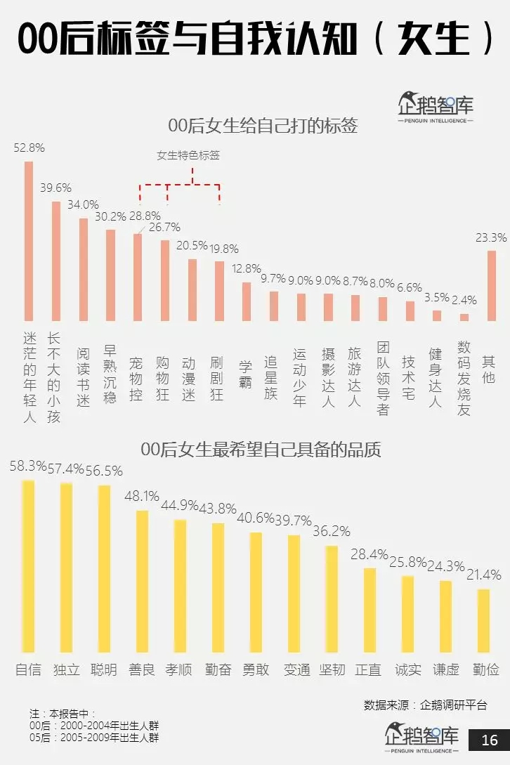 为此,企鹅智库基于自主开发的企鹅调研平台、产品预研中心和第三方合作大数据,发布了这份长达47页的《00后&05后研究报告:超新生代如何规划自己的未来十年》。