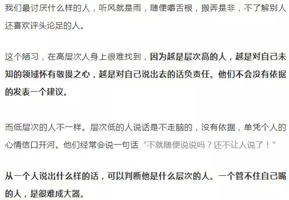 咱们仔细看看身边的人,越是层次低的人,越容易相信谣言,而且越容易传播谣言,因为他们的认知水平低,容易盲从。