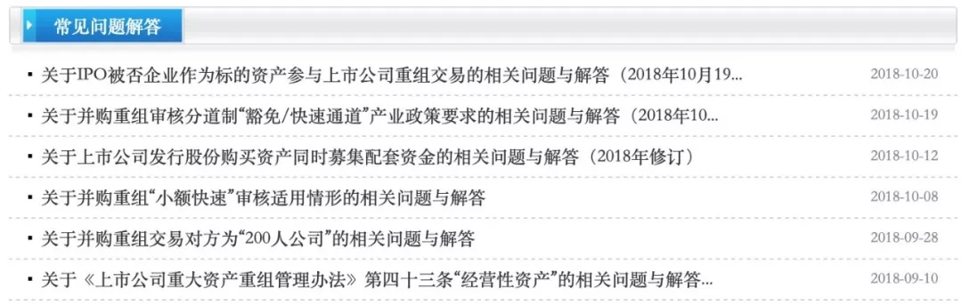 自2018年9月以来,证监会连续出台政策放宽限制支持重组:放宽对少数股东权益收购的限制、简化“小额快速”审核、放松对配套募集资金使用用途的限制、放松对IPO被否企业借壳的时间限制等,监管顺应市场呼声,值得点赞!