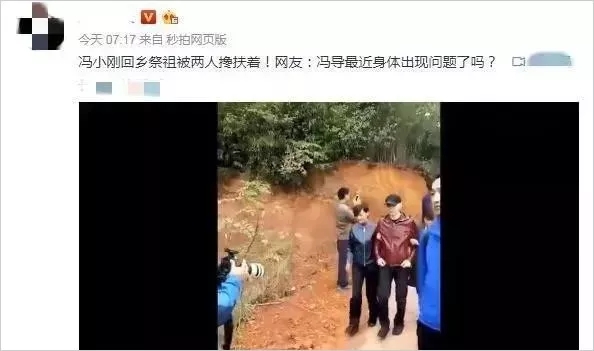 其实,早在30日,就有网友曝出冯小刚回到湖南老家祭祖,走路好像不是很方便,还被两个人搀扶着走路,网友们看到都不敢相信,纷纷疑问冯小刚的身体怎么会这么差了?一度觉得冯小刚的身子是虚了。